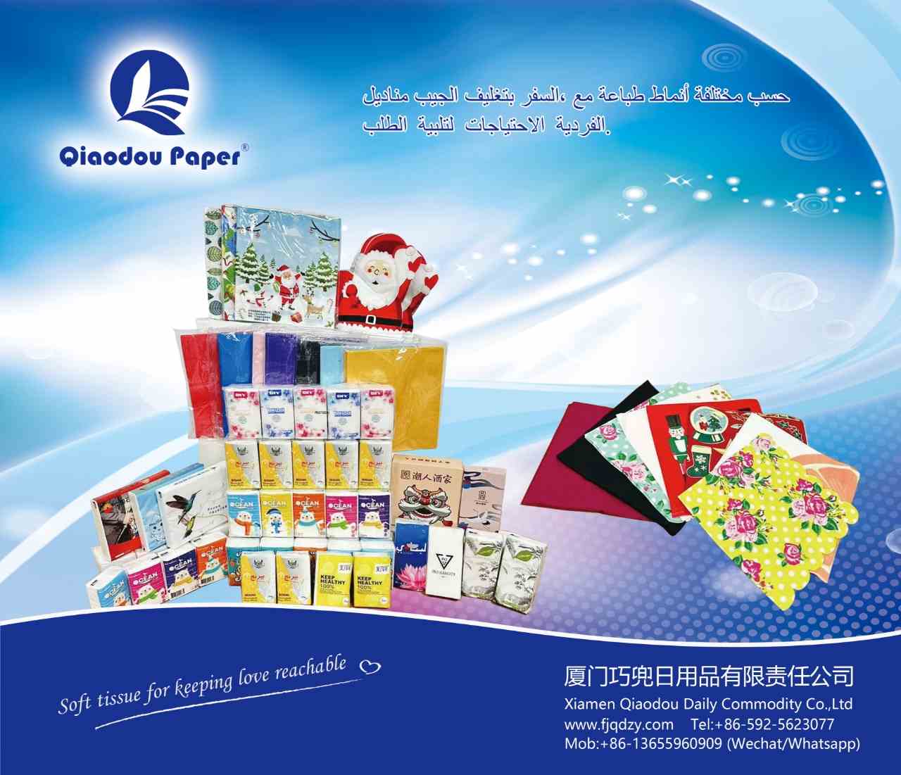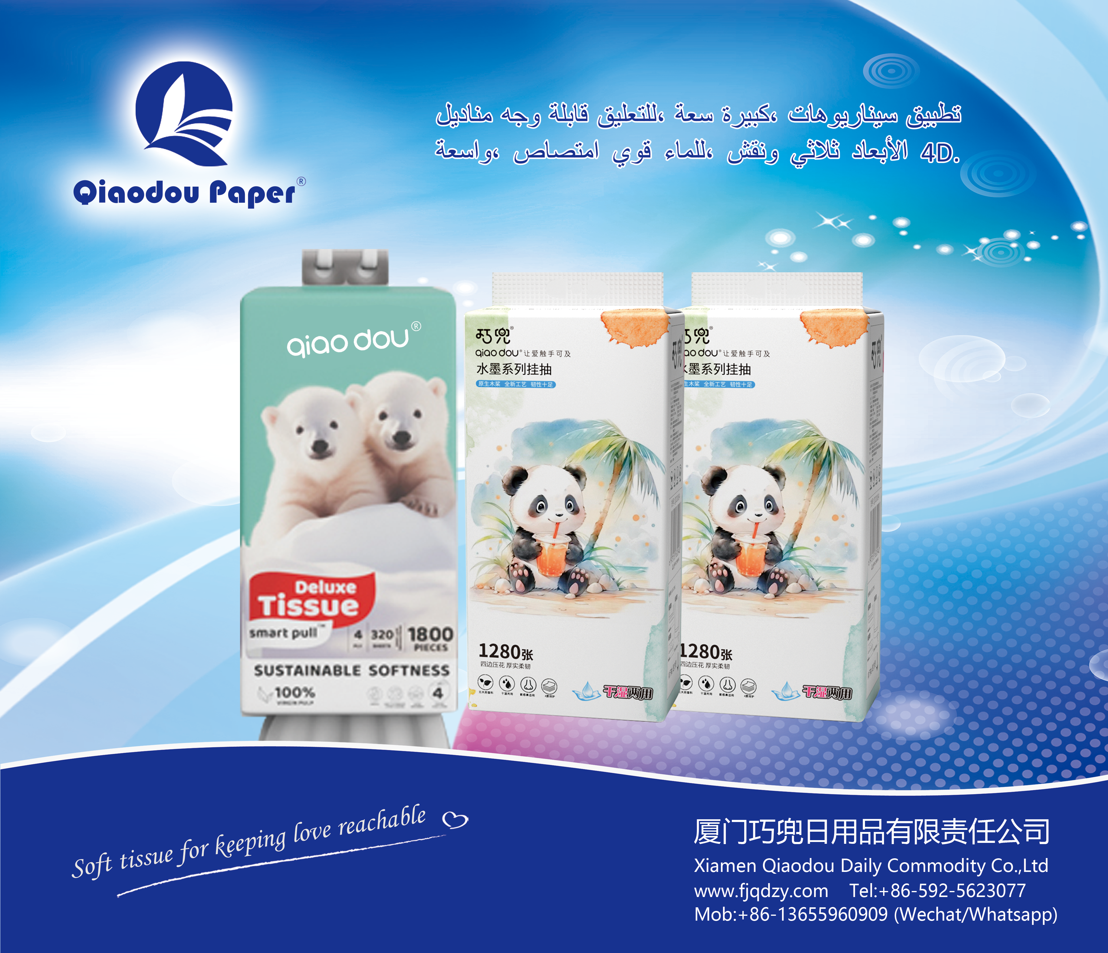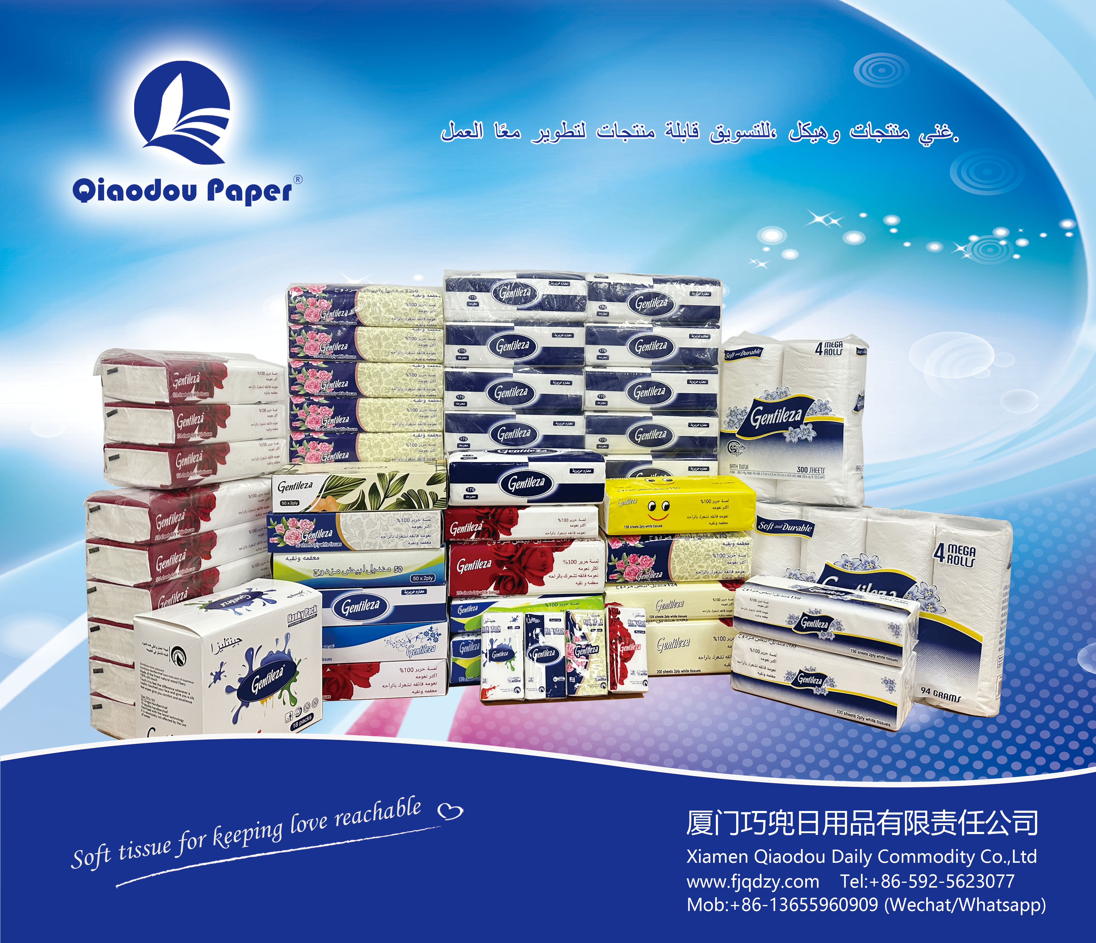 Xiamen Qiaodou Daily Commodity Co., Ltd. (est. Feb 2013, based in Xiamen) has 2 production bases in Quanzhou & Longyan. Adhering to "people-oriented, customer-first", it nurtures talent for quality services. Brands: "Qiaodou -reaching out love", "Qiaodou", "Xinbei Hu", "Gentileza". Products: tissue, napkins, wet wipes, diapers, laundry detergent, etc. Customers in 50+ countries (Southeast Asia, Middle East, South America...). Welcomes personal care partners for mutual